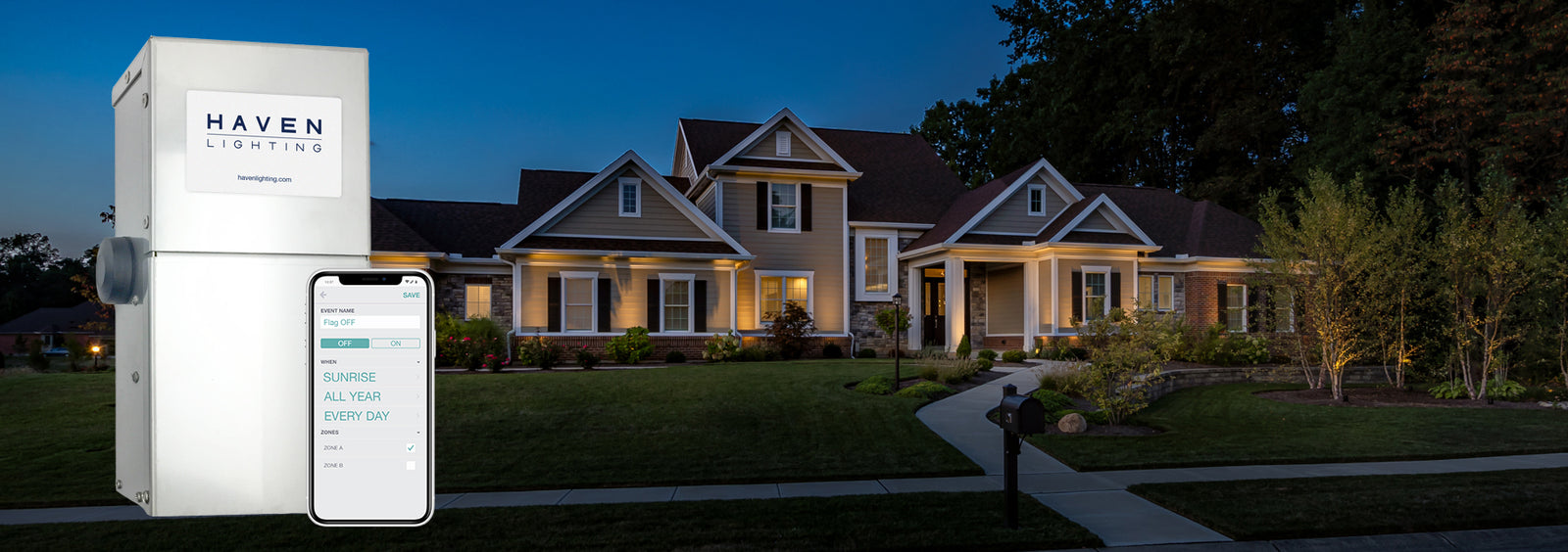 Learn MoreHaven Lighting systems offer built-in automation for landscape lighting. This allows a complete year-round setup of your outdoor LED lighting system giving you the peace of mind that your system will turn on and off at exactly the right time. Our smart outdoor lighting systems can be set up so your landscape can reflect the season. Decorating for holidays couldn’t be simpler with Haven’s easy scheduling. All of our smart lighting systems automatically adjust for time changes leaving you with one less thing to worry about. Setup is easy with the Haven Lighting App.