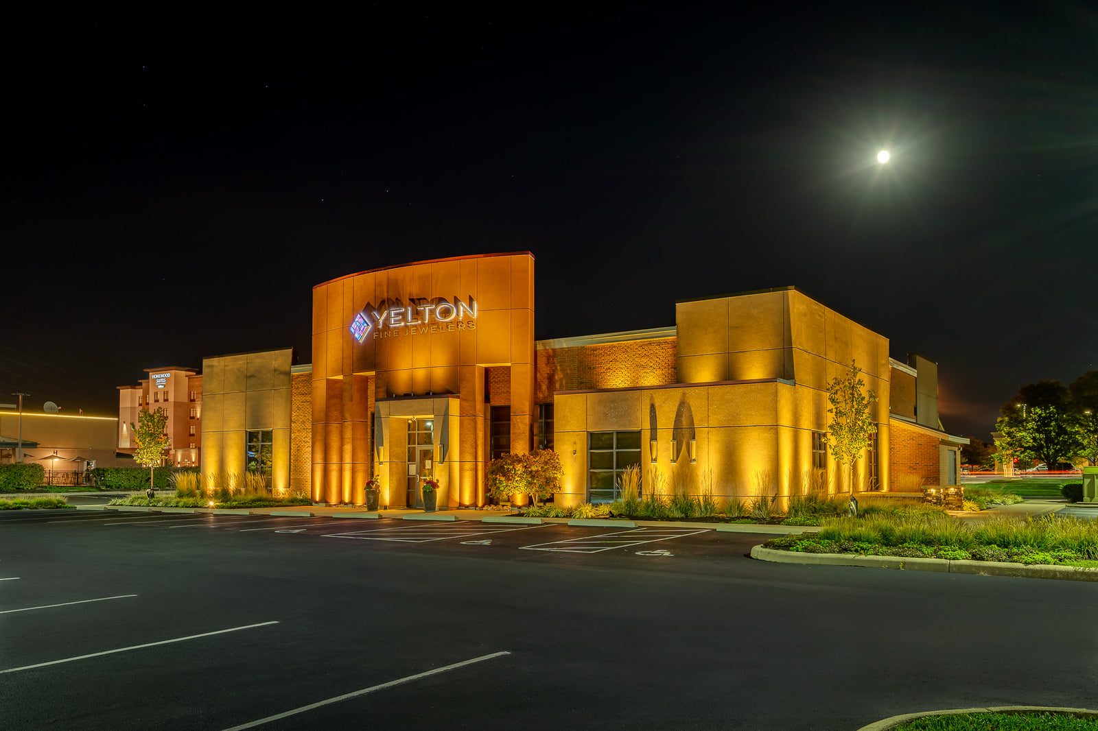 Multi-colored jewelry store exterior lighting enables you to do that and much more. Use Haven Lighting’s commercial building exterior lighting to create a balance of warm and cool light that highlight a gem’s inherent appeal. In addition to enhancing the aesthetics of your collection, commercial outdoor lights also strengthen a sense of security during or outside of business hours.