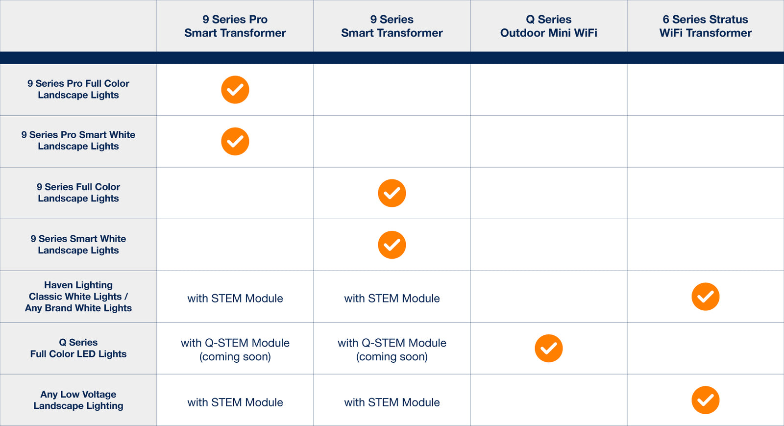 This Smart Transformer works exclusively with our 9 Series WiFi enabled line of landscape lighting and the Haven smartphone app. It can be used on either our full color or adjustable white 9 Series products in any combination. It may be mounted indoor or outdoor for easy installation. The transformer plugs into a regular outdoor wall outlet and contains a toroidal core that offers cooler and quieter performance. This unit is easy to hide and packs 150W or 300W of lighting power.