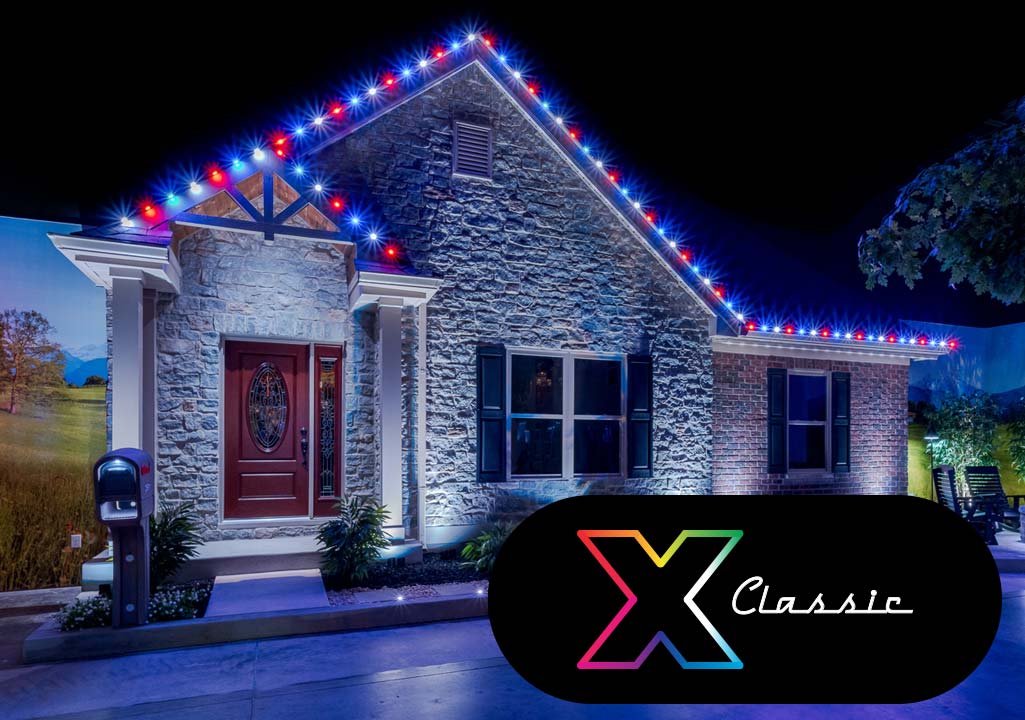 X Series Classic transforms your roofline into an eye catching visual statement. You can utilize stunning motion effects that are endlessly customizable, or use stationary colors and patterns to make holiday decorating a breeze!
